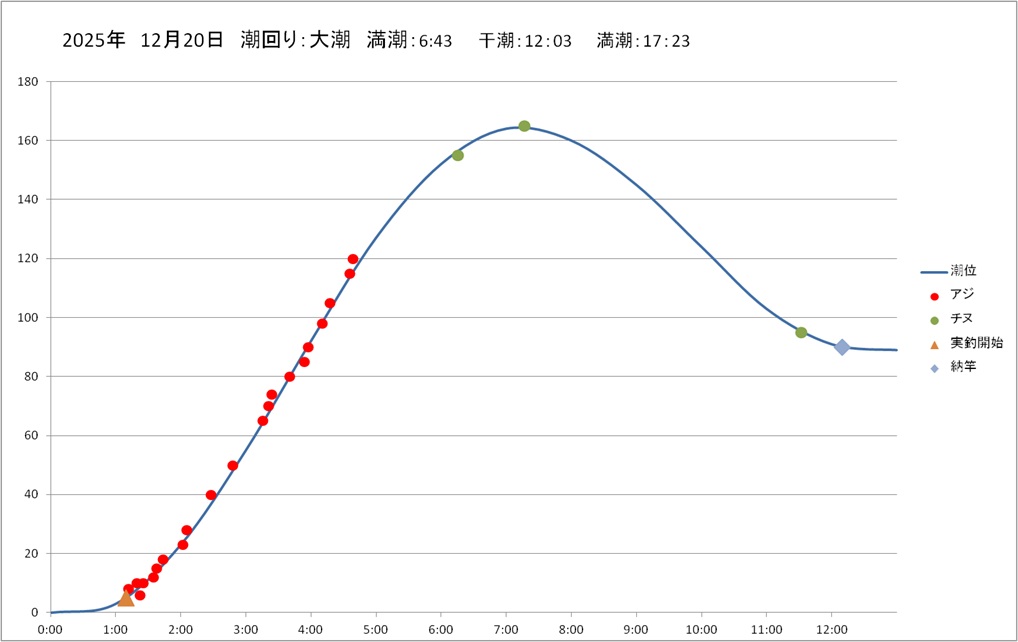 今日の釣りはこんな感じ。干潮からの上げでアジは順調に釣れたがいいサイズは少なかった。朝からの釣りはチヌ3匹のみで残念ながら真鯛は釣れず。それでもカゴ釣りの醍醐味が堪能できたのでよしとしよう。年内はあと1回行けるかどうかだが、真鯛を釣って年納めといきたいところだ。