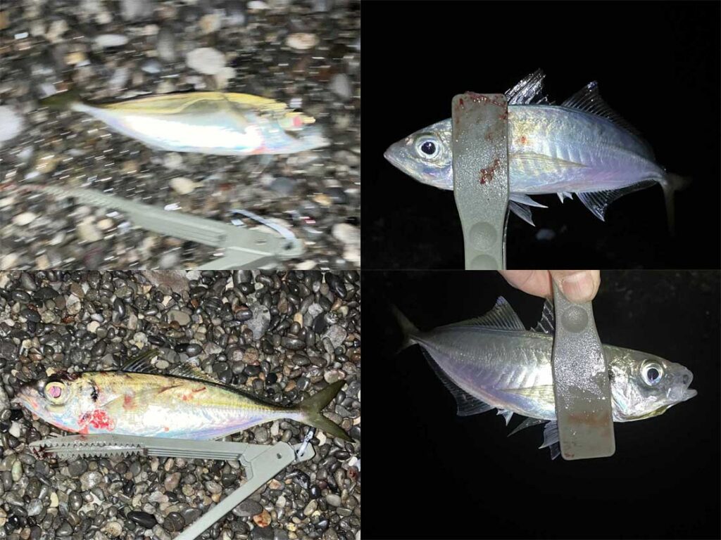 土手は2段だが高く緩い追い風でいいコンディションだ。潮位はド干潮だがライトタックルでも十分届くのでアジ釣りを開始する。