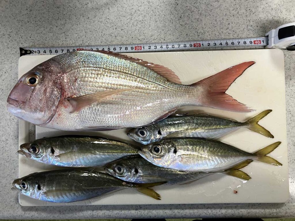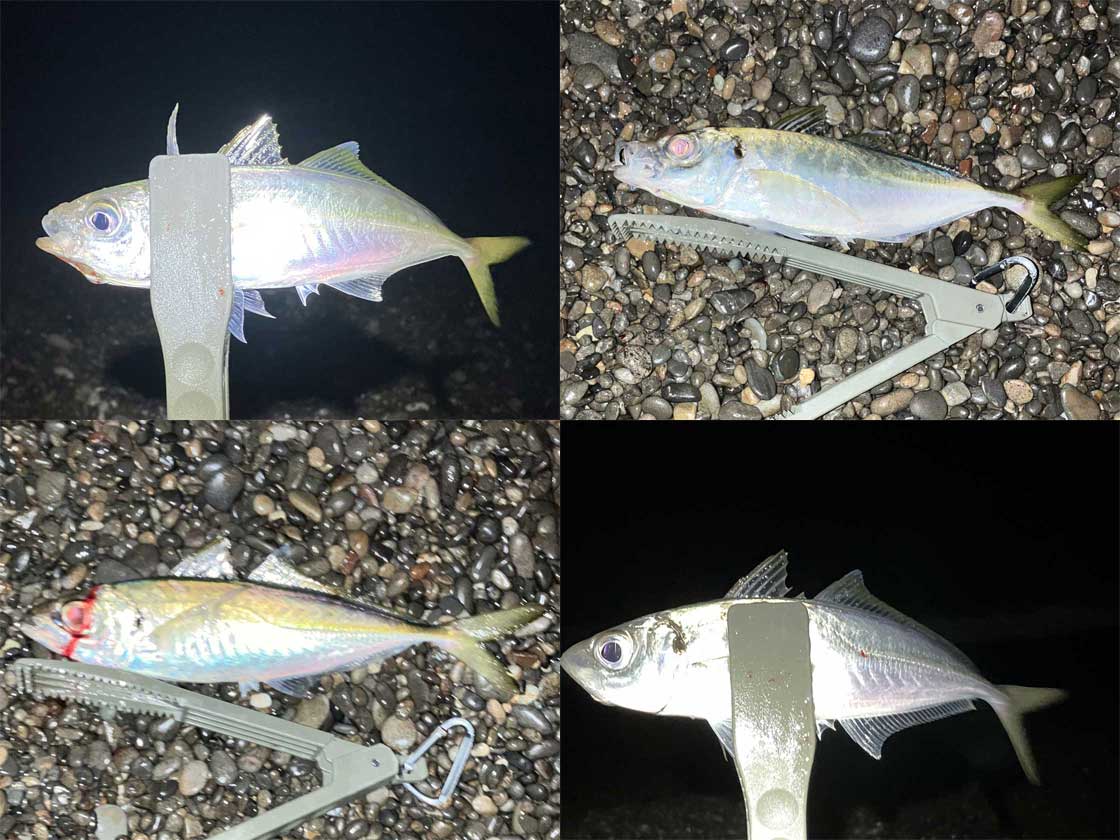今日の釣りはこんな感じ。干潮からの上げでアジは順調に釣れてはいるが活性はやや低く、いいサイズは少なかった。夜明け前の真鯛以外はいつも通りの釣れない展開となり浜の調子は良くないと思う。それでも久しぶりにアジ以外のお土産が釣れて満足のいく釣行となりました。最近は朝からの釣りで調子が悪く、心が折れかけてるところでポロっと釣れる。釣りの神様はなんて残酷なのだろうか。これでまた煙樹ヶ浜に通うことになりそうだ。