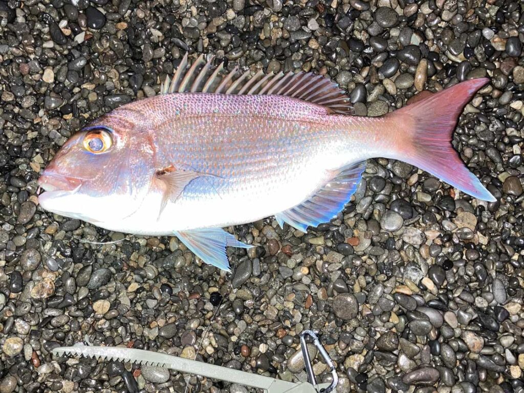 2025年12月7日、煙樹ヶ浜へ両軸遠投カゴ釣りに行ってきました。久々に真鯛の顔を見ることができました。